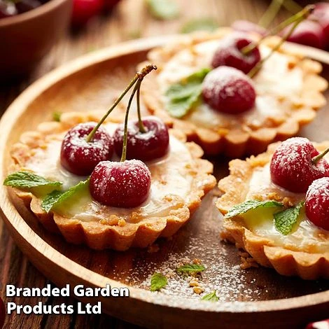 Delicate spring cherry blossom followed by a mass of delicious fruit in July! Specially bred dwarf variety, producing a mass of juicy cherries on stems reaching only 1m (3′ 3″) tall; just perfect for the patio! Supplied pot grown, 30-40cm (12-16″) in height. Ceramic pot not supplied.